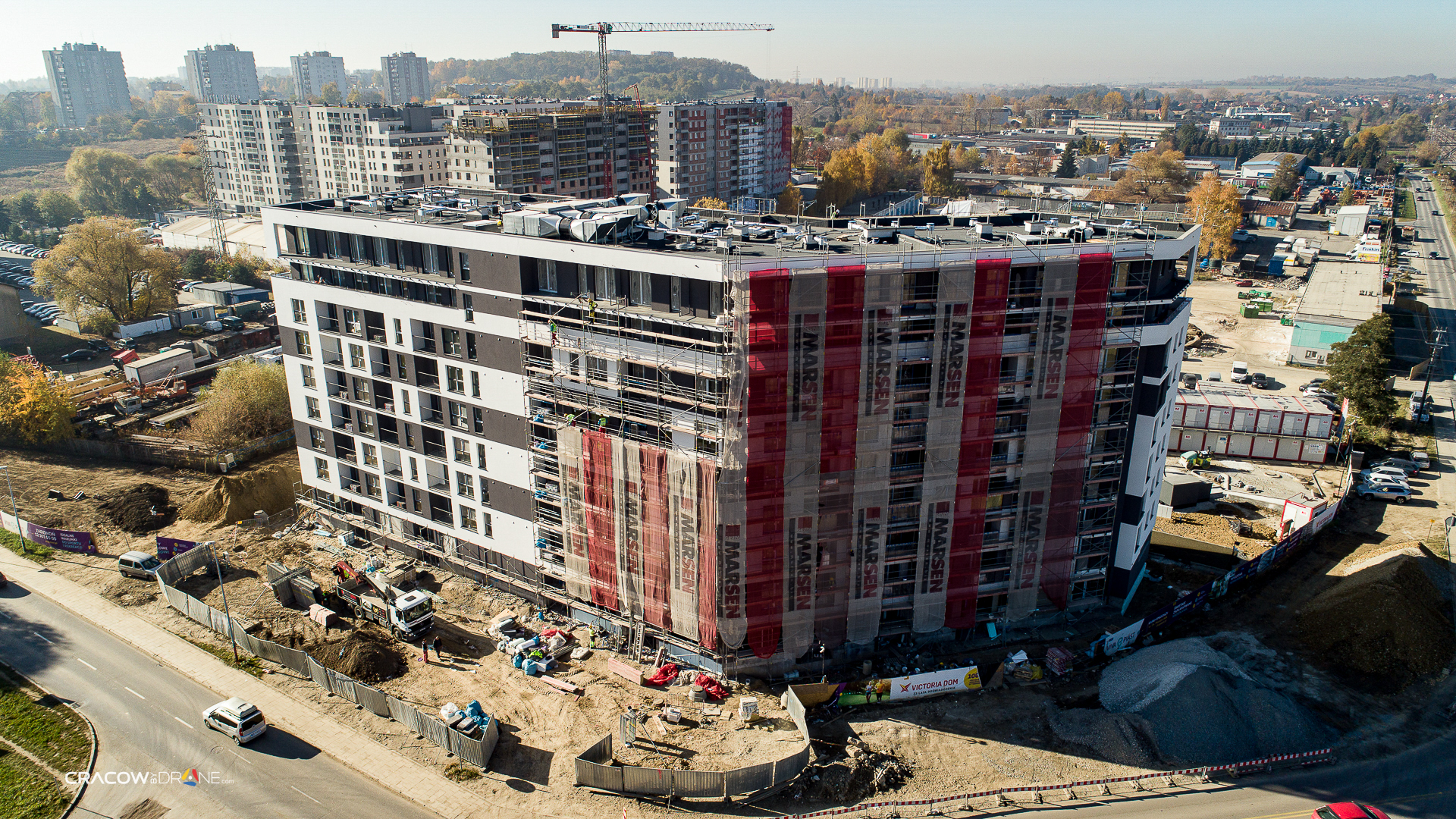 Robienie zdjęć z lotu ptaka w trakcie realizacji inwestycji pozwala dokumentować postępy prac i wykorzystywać je w materiałach reklamowych. Dodany na stronę dewelopera czy do social mediów stanowi świetne narzędzie marketingowe i pozytywnie wpływa na czas komercjalizacji inwestycji.