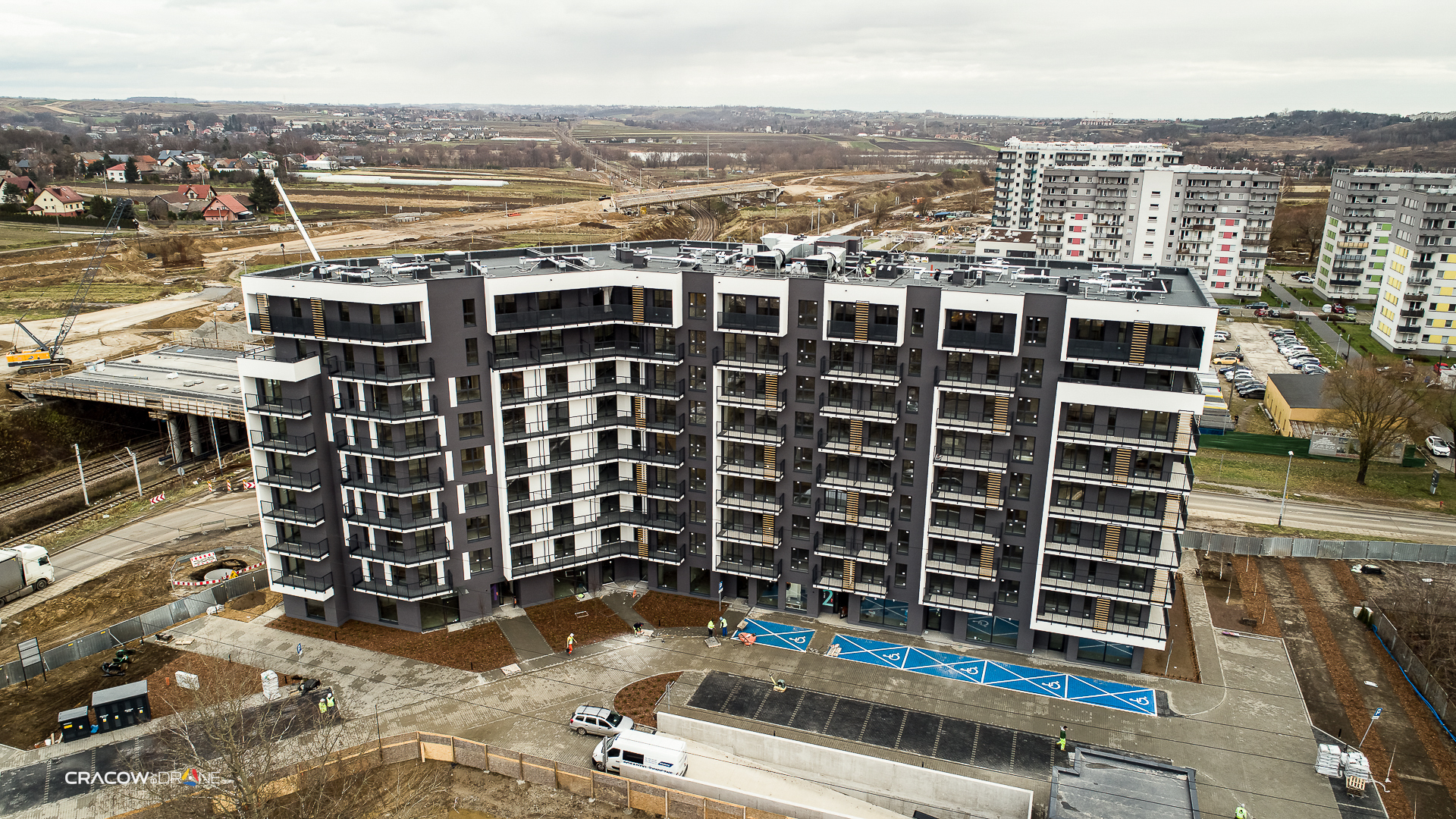 Zdjęcia i filmy z drona wykonywane na różnych etapach budowy to doskonały sposób by pokazać postęp prac przy prowadzonej inwestycji. Nagrania pustej działki możesz wykorzystać, by stworzyć wizualizację i pokazać projekt osiedla z lotu ptaka. Z takiej perspektywy będzie można również uchwycić infrastrukturę komunikacyjną terenu, która jest ważnym czynnikiem wpływającym na decyzję o zakupie nieruchomości. Film z drona pozwala również zobaczyć widok z okna powstającego biura czy mieszkania.